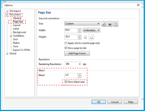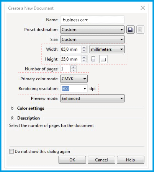 .Šajā logā norādiet dokumenta nosaukumu un izmērus. Atlasiet lauku un ievadiet .
