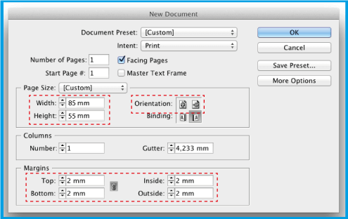 .Ievadiet opcijā 2 mm (šī atkāpe definēs drošības zonu, t.i., visam tekstam jābūt šīs zonas iekšpusē).