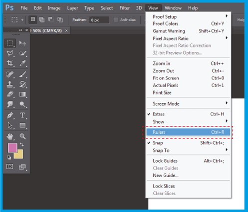 .Noklikšķiniet uz lineāla un velciet vadlīnijas līdz dokumenta beigām.