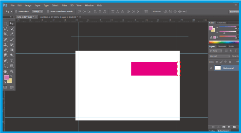 .Parādīsies apgriešanas līnijas, tāpēc paplašiniet savu veidni līdz apgriešanas robežām. Zemāk redzamajā piemērā rozā ornaments ir jāpaplašina līdz jaunajam izveidotajam galam.