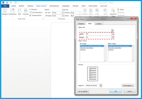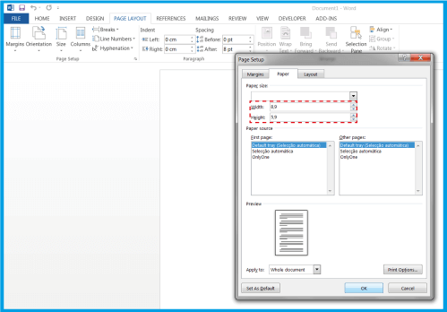 .Atvērtajā lodziņā ievietojiet sava dokumenta mērījumus.